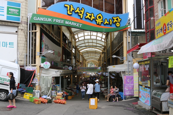 °£¼®ÀÚÀ¯½ÃÀåÀº 1970³â¿¡ °³¼³µÈ »ó±âÁÖÅðǹ°ÇüÀÇ ÁßÇü½ÃÀåÀ¸·Î °£¼®¿À°Å¸®¿Í °£¼®»ç°Å¸® Áß°£¿¡ À§Ä¡ÇØ À¯µ¿Àα¸°¡ ¸¹¾Æ ¾ðÁ¦³ª »ç¶÷µé·Î ºÕºó´Ù.